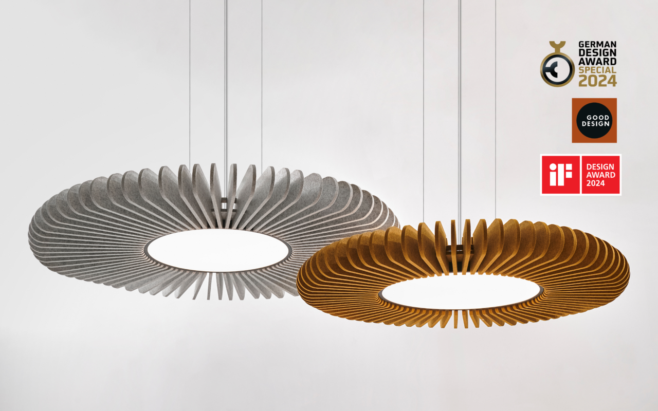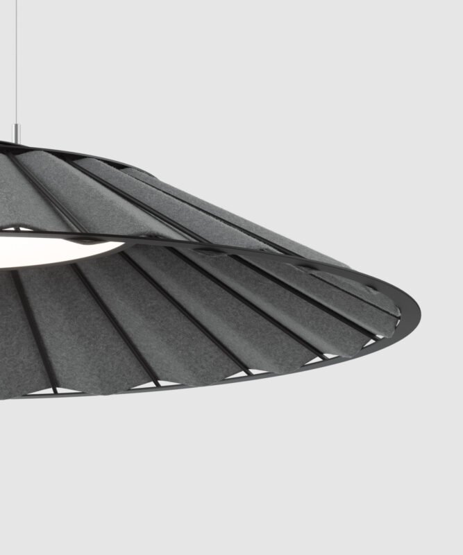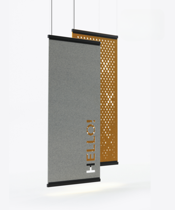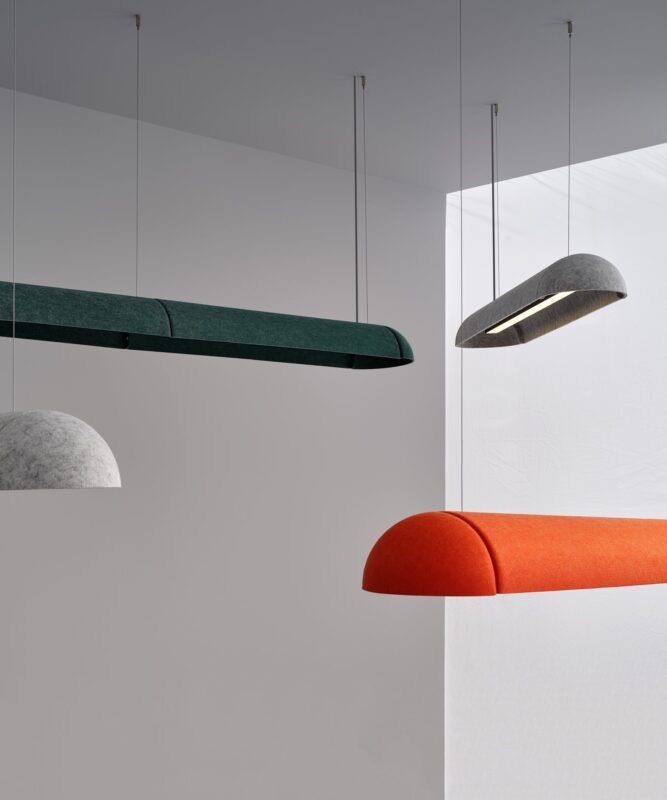 Office space design covers many aspects. Therefore, our designs are not limited to just one function. One application is to provide the user with acoustic comfort. We obtain satisfactory results in reducing noise levels with adequately selected materials and fabrics in our acoustic lighting. That is one of the many advantages of our luminaires, and there are many more!