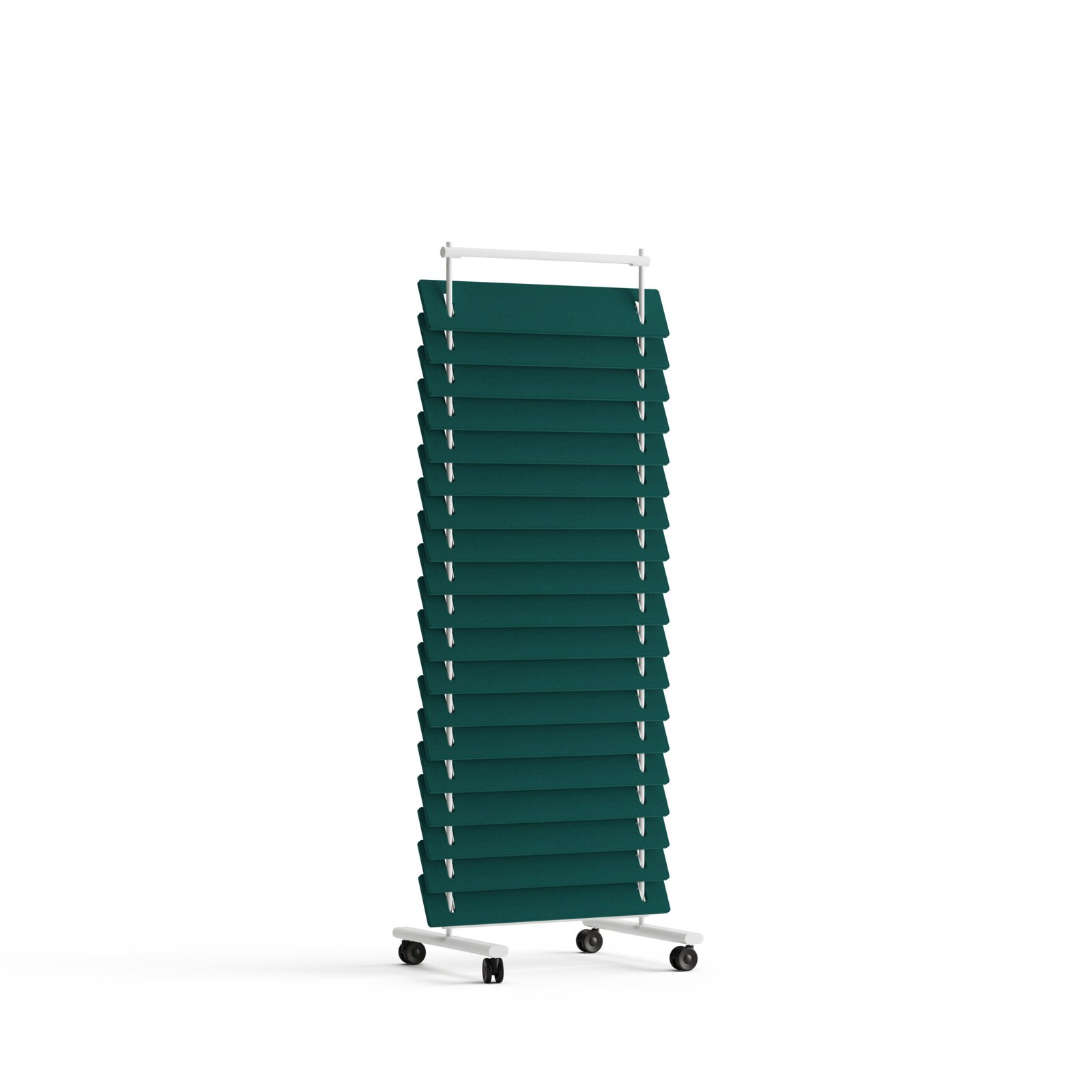 We want all office employees to feel comfortable in their work environment. The Blinds Floor creates the right balance between open and closed workstations on every demand, which can be obtained by setting the louvers at the desired angle. This free-standing mobile office divider is made from recycled PET bottles, offers the benefits of acoustic shielding, and creates excellent lighting conditions. Blinds Floor is made for office environments that demand superior functionality, aesthetics, illumination comfort, and acoustics.