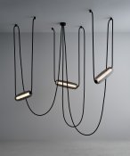 Boya is a decorative pendant luminaire. When hung in a cluster, it can be used as a single element or create an exciting constellation. It is a combination of handicraft and state-of-the-art technologies. The lamp shade is made in traditional blown-glass technology. The suspended system is designed to give you the freedom to compose it in dynamic arrangements, while the nonchalant cabling adds to its character. The color of the glass and the cable wrap can be customized.