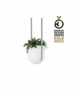 This decorative lamp invites more nature into the interior, which is the primary goal of the biophilic design trend. It can be used both as a lamp and a plant pot. The simple form of the luminous vessel provides the perfect background to emphasize the beauty of the plant. The lamp emits a soft, silky-smooth light that creates a relaxing ambiance, perfect for such areas as chill-out zones. The luminaire is suspended on two fabric bands, available in various colors. The rotomolded lampshade makes the lamp completely waterproof.