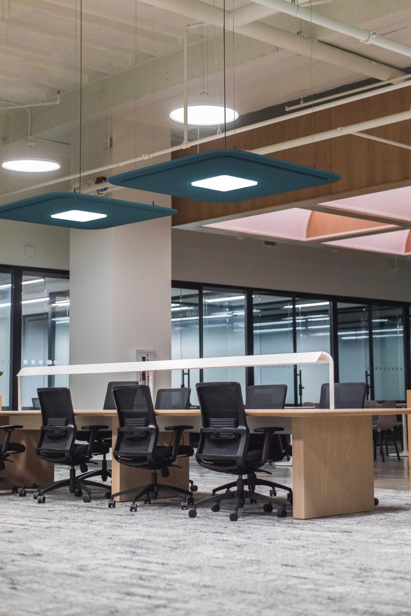 Blade X is an acoustic luminaire belonging to the Blade family with excellent sound absorption properties. Its X-shaped design, which includes four PET panels, effectively absorbs ambient noise. In addition, it can act as a partial barrier in open-space offices. Using high-quality light sources, the luminaire can also act as lighting for multiple workstations. Its advanced design, focusing on effective sound attenuation and providing adequate illumination levels, makes it a versatile tool for improving the quality of work and the comfort of employees.