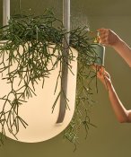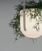 This decorative lamp invites more nature into the interior, which is the primary goal of the biophilic design trend. It can be used both as a lamp and a plant pot. The simple form of the luminous vessel provides the perfect background to emphasize the beauty of the plant. The lamp emits a soft, silky-smooth light that creates a relaxing ambiance, perfect for such areas as chill-out zones. The luminaire is suspended on two fabric bands, available in various colors. The rotomolded lampshade makes the lamp completely waterproof.
