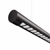 Line 30 Oval in Dark Optic stands out due to its straightforward and modern appearance, and the curved end caps enhance the floating character of the lightweight pendant luminaire. When 6 ft long, it surprises with a filigree contour that measures only 30 mm. The luminaire is equipped with innovative, high-performance advanced optics lens technology to achieve outstanding lighting quality in the workplace. The lenses perform a uniform light distribution and are available in three output levels and color temperatures. The luminaire has interchangeable black, white, and silver lenses. The housing can be painted any color from the RAL palette.