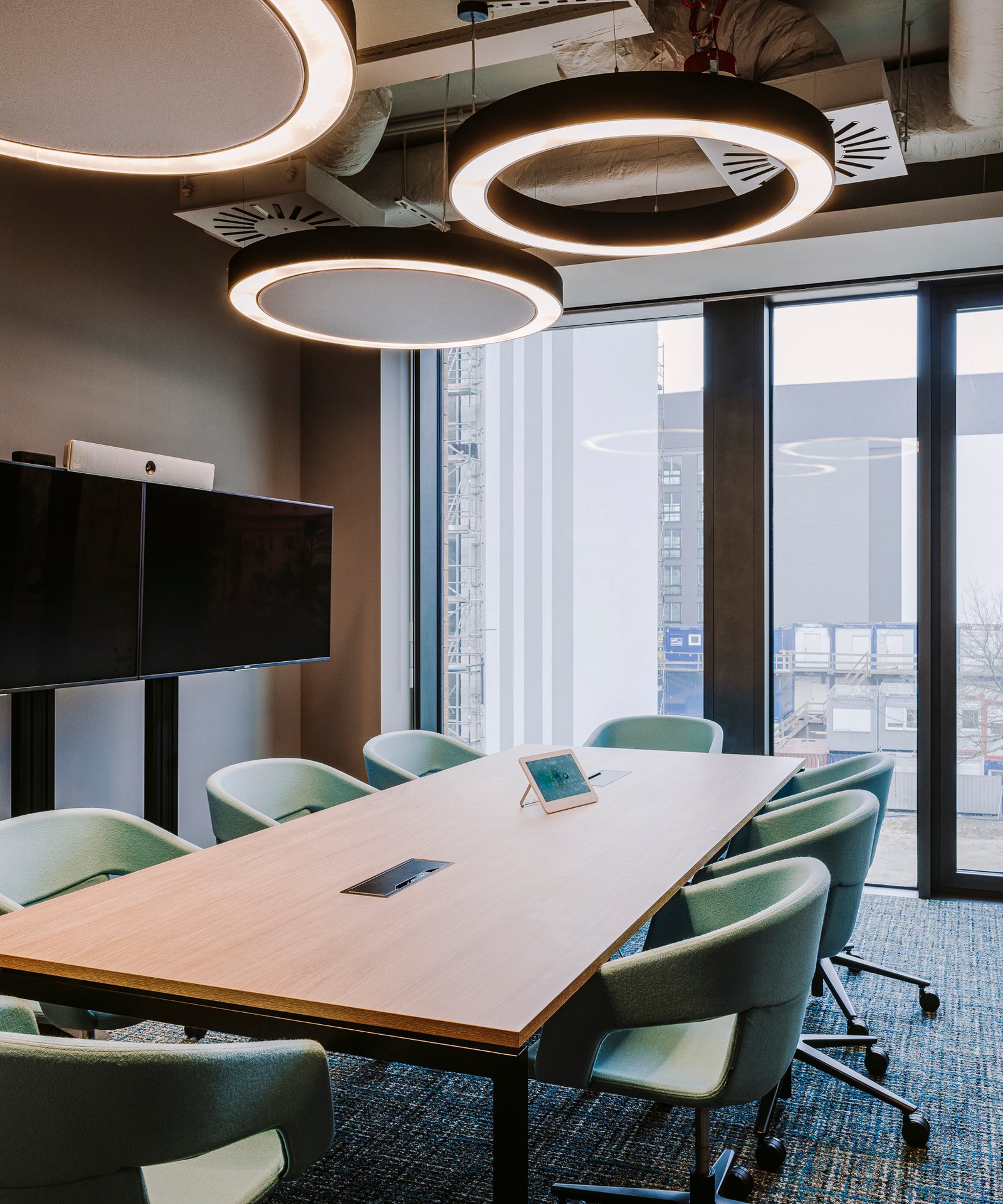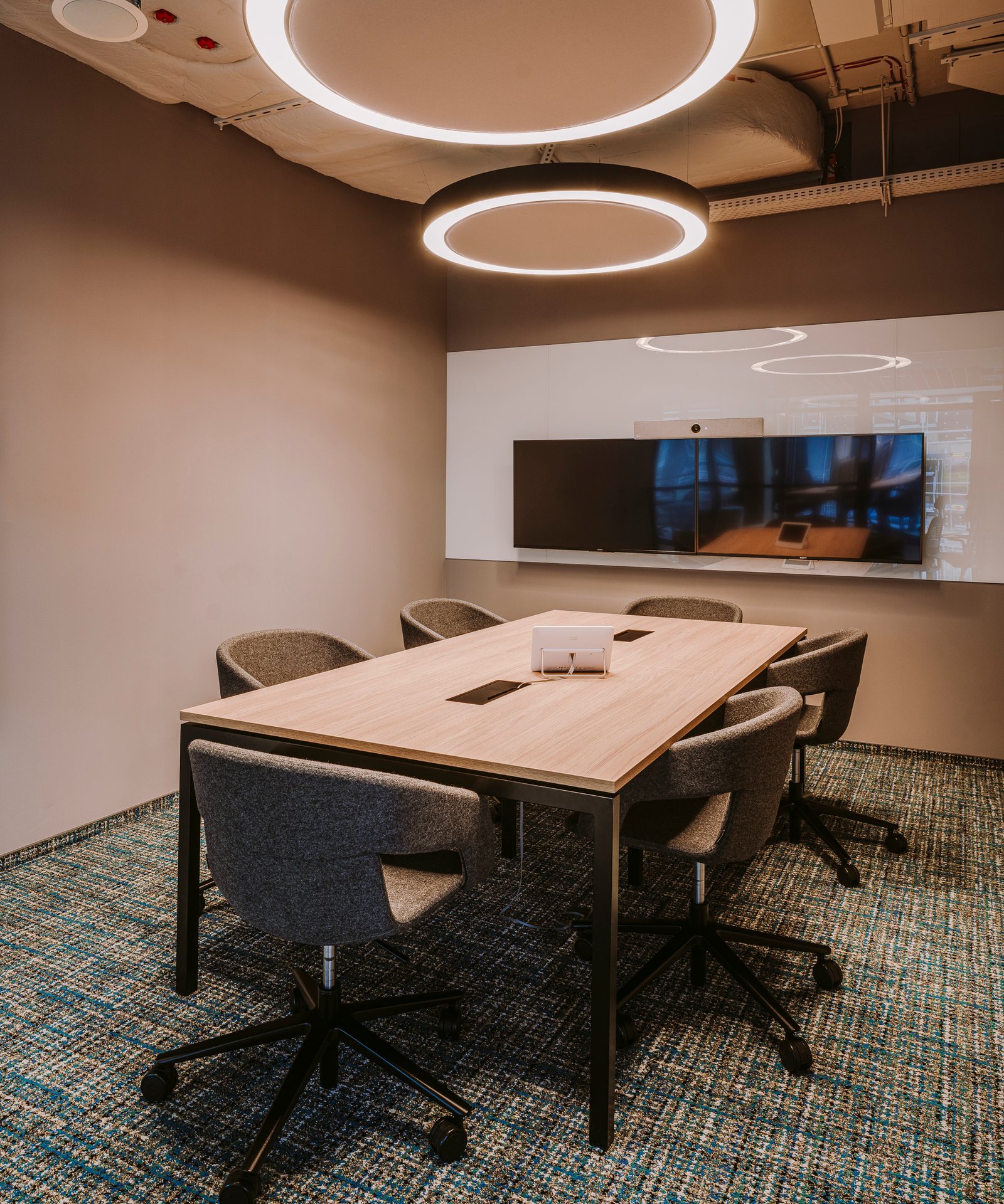 The modern and elegant ceiling lamp Acustik acoustic felt Ring is lighting that provides adequate acoustics in office rooms. The Acustik acoustic felt Ring pendant lamp is professional lighting in the shape of a large circle, and its diameter is 90 cm / 120cm / 150cm. The lamp consists of a band-shaped light component around a soft panel. Due to its size, the lamp will work well in office spaces such as conference rooms. It will perfectly illuminate such spaces, giving them a touch of elegance and increasing work comfort.