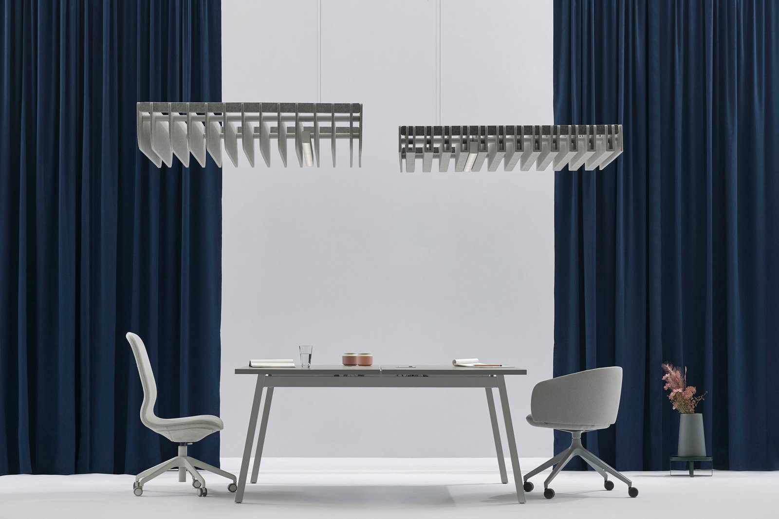Blade Y represents a member of the Blade luminaire series, renowned for its remarkable capacity to absorb sound. This acoustic luminaire features three PET panels arranged in a Y-shape, effectively dampening and isolating ambient noise. Moreover, its distinctive design serves as a partial barrier, making it particularly useful in open-plan offices. Combining high-quality light sources, Blade Y emerges as the perfect lighting solution for various workplace environments.