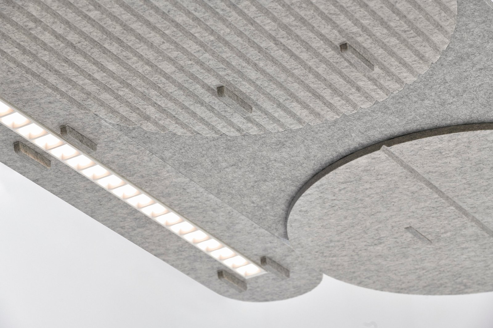 This modular acoustic ceiling system inspires various shapes, sizes, and finishes, encouraging creative lighting in the office space. The wide range of modules thus enables different combinations that offer full functionality, provide maximum lighting comfort, and, most importantly, reduce ambient noise. Interior designers can choose from a wide range of longitudinal, oval, and circular acoustic panels and modules with a flushed linear luminaire that gives direct light. The multifunctional ceiling system can be expanded as desired and linked with smart lighting control technology.