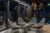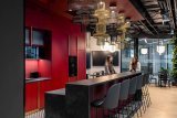 The lamp resembles fabric in texture, but it has been enlarged to a giant scale. The “warp” is made of folded aluminum tubes, and the “weft” is made of thick wool fortified with foam. This overscaled lighting design has been chosen to allow for the division of optical and acoustic space. At the same time, it does not close the area entirely because it is openwork. When dimmed, it can provide mood lighting in spaces for relaxing.