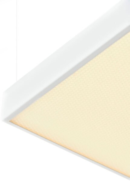 Luminaire with a white aluminum frame, with a power of 36W, 40W, 45W, and dimensions of 595x595. BACKLIT boasts quick assembly in suspended ceilings, even illumination, and high light performance. This luminaire is perfect for offices, hotels, and other facilities that require perfect lighting thanks to professional, intense LEDs that maintain an excellent, vast light output and a high color rendering index of CRI/Ra>80.