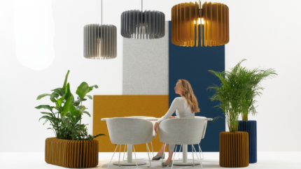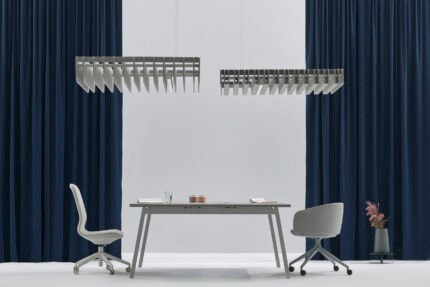 Acoustic Zen, the ribbed shape office lamp made of sound-absorbing material, is a stylish and eco-friendly lighting solution that can help to create a more comfortable and productive workspace.