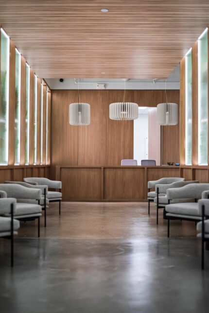 Verti Ceiling is the aesthetically appealing ceiling-light combination comprising the fourteen vertical acoustic baffles and integrated linear luminaire that delivers an unlimited range of design options. This pendant ceiling luminaire reduces the sound level in spacious offices and exudes a presence that impresses beholders with its dynamic appeal. Applying high-performance linear luminaire Acustik Line 43 offers superior performance, and all fourteen available optics provide uniform illumination. Four feet long light source is hidden between the baffles to redirect light downwards and to create ambient, glare-free from any angle illumination.